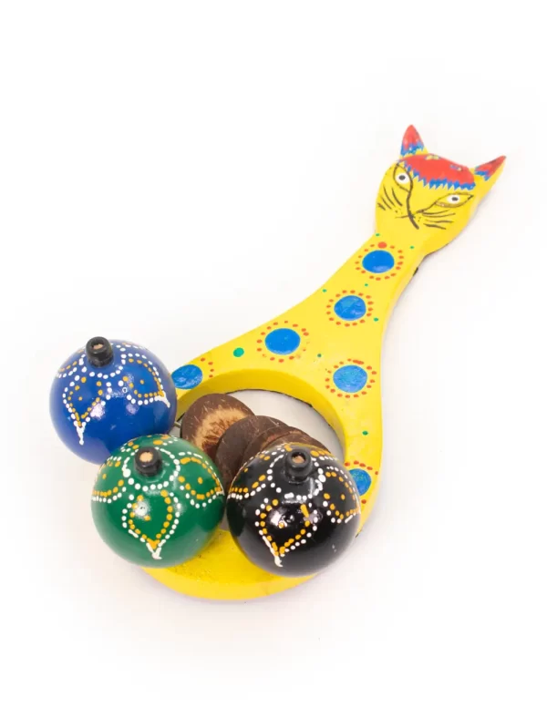 Maracas Coloridas Material: Madera Medida: 20 cm Forma: Gato Color: Amarillo