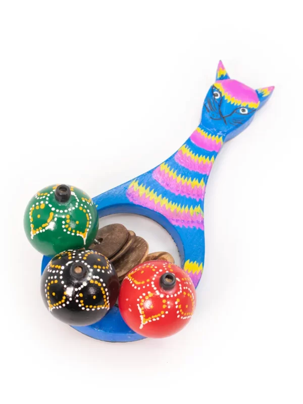 Maracas Coloridas Material: Madera Medida: 20 cm Forma: Gato Color: Celeste