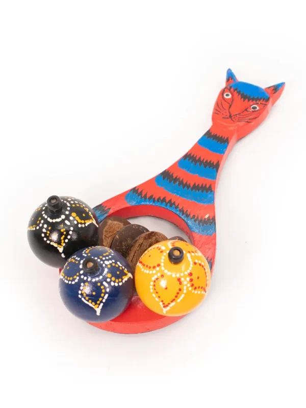 Maracas Coloridas Material: Madera Medida: 20 cm Forma: Gato Color: Rojo