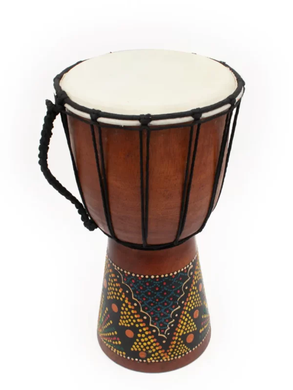 Tambor Djembe Material: Madera Medida: 30 cm Diseño: Puntillismo