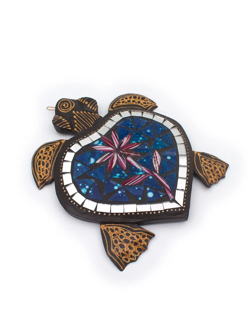 ADORNO DE MADERA DE TORTUGA MOSAICO PLANO AZUL