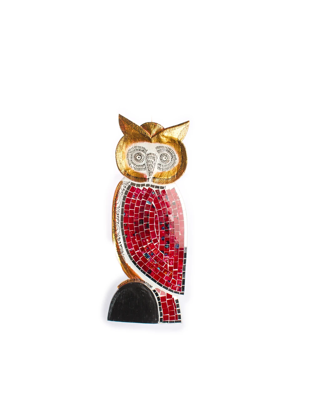 ADORNO DE MADERA PARA PARED BUHO MOSAICO PINTADO ORO