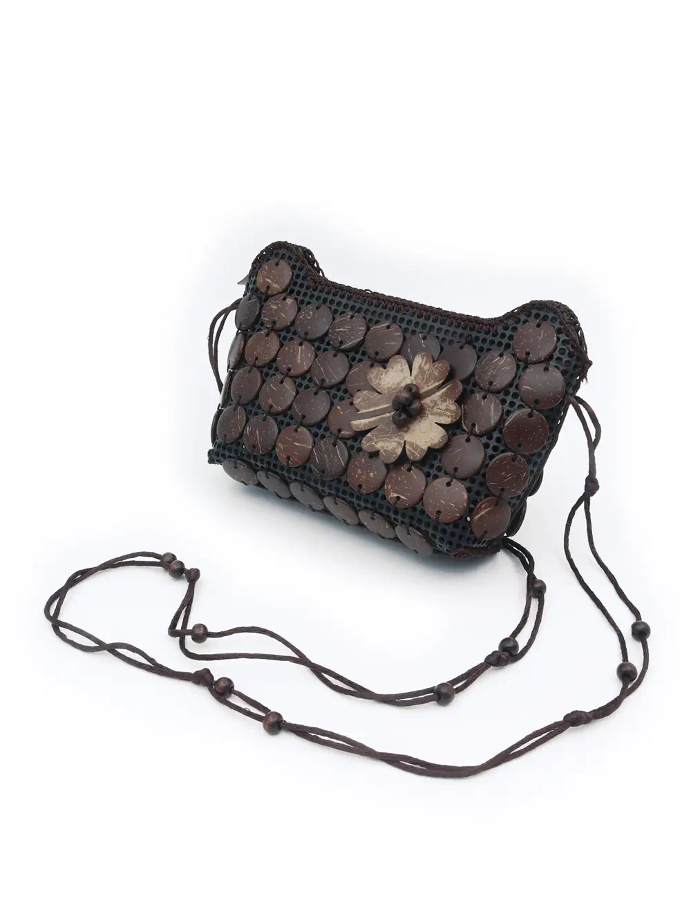 BOLSO DE CÁSCARA DE COCO CON CUENTAS ESTILO ÉTNICA CON 3 FLORES