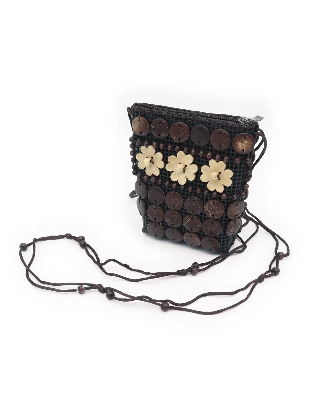 BOLSO DE CÁSCARA DE COCO CON CUENTAS ESTILO ÉTNICA CON 3 FLORES