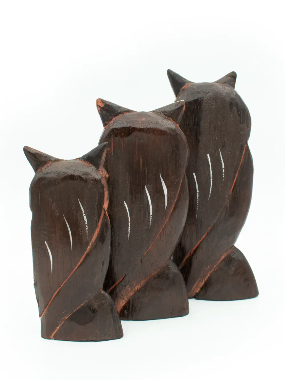 Este set de búhos decorativos de madera es perfecto para quienes buscan añadir un toque único y artesanal a su hogar. Cada figura está cuidadosamente tallada a mano, destacando los detalles que hacen de estos búhos un complemento elegante y especial para cualquier espacio. Su diseño combina simplicidad y estilo, ideal para decorar salas, oficinas o incluso dormitorios.