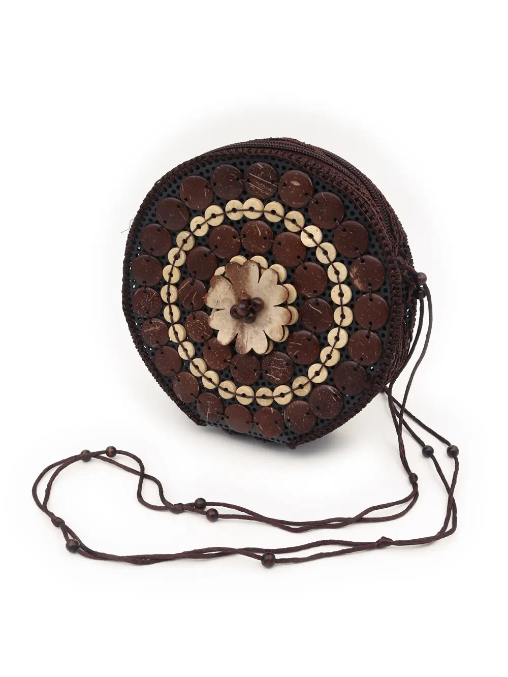 BOLSO DE CÁSCARA DE COCO CON CUENTAS ESTILO ÉTNICA CON 1 FLOR