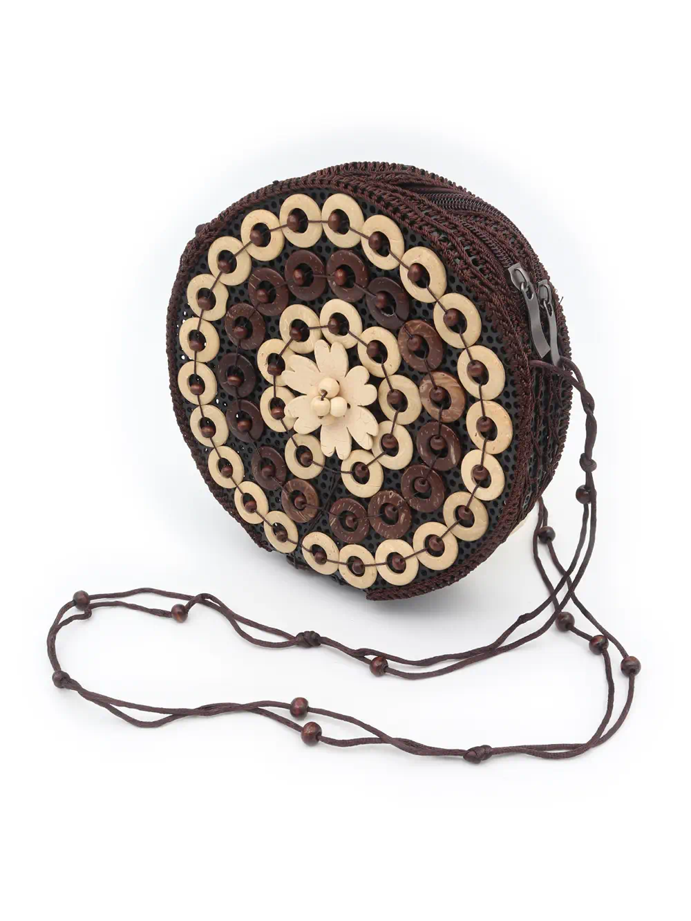 BOLSO DE CÁSCARA DE COCO CON CUENTAS ESTILO ÉTNICA CON 3 FLORES