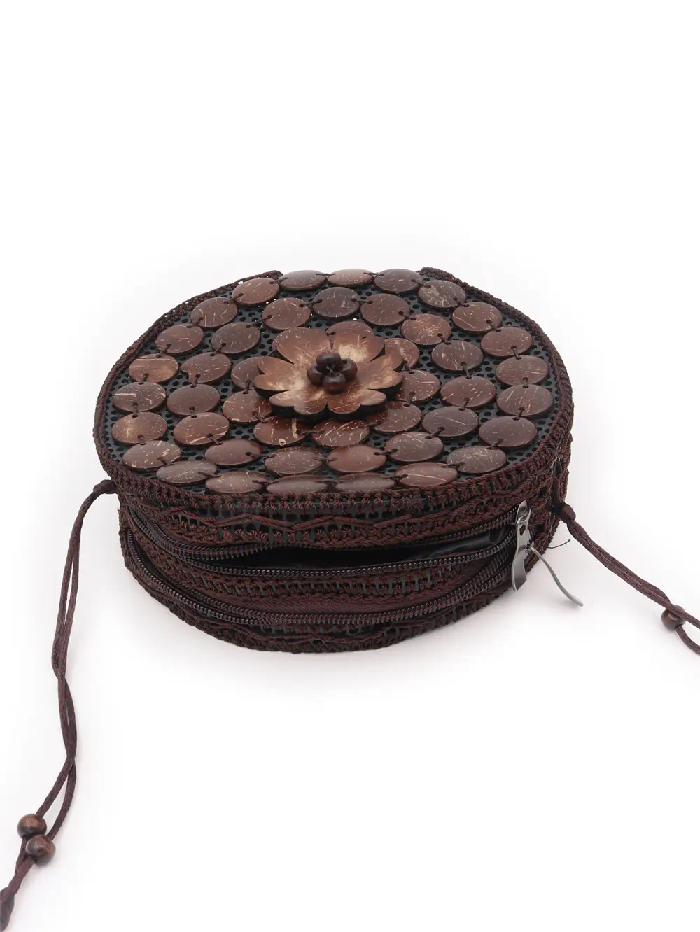 BOLSO DE CÁSCARA DE COCO CON CUENTAS ESTILO ÉTNICA CON 3 FLORES