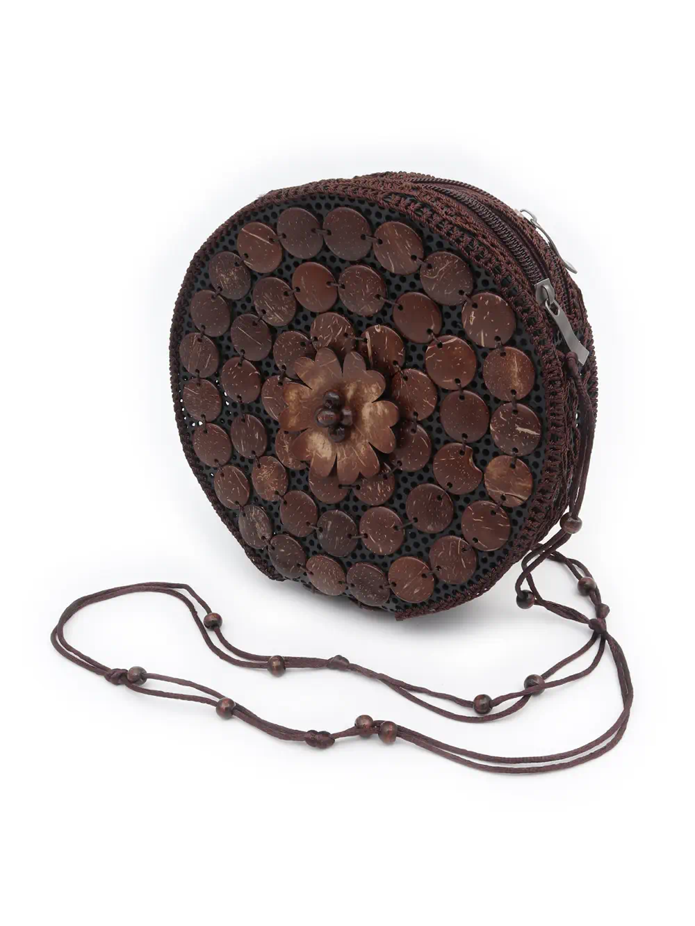 BOLSO DE CÁSCARA DE COCO CON CUENTAS ESTILO ÉTNICA CON 3 FLORES