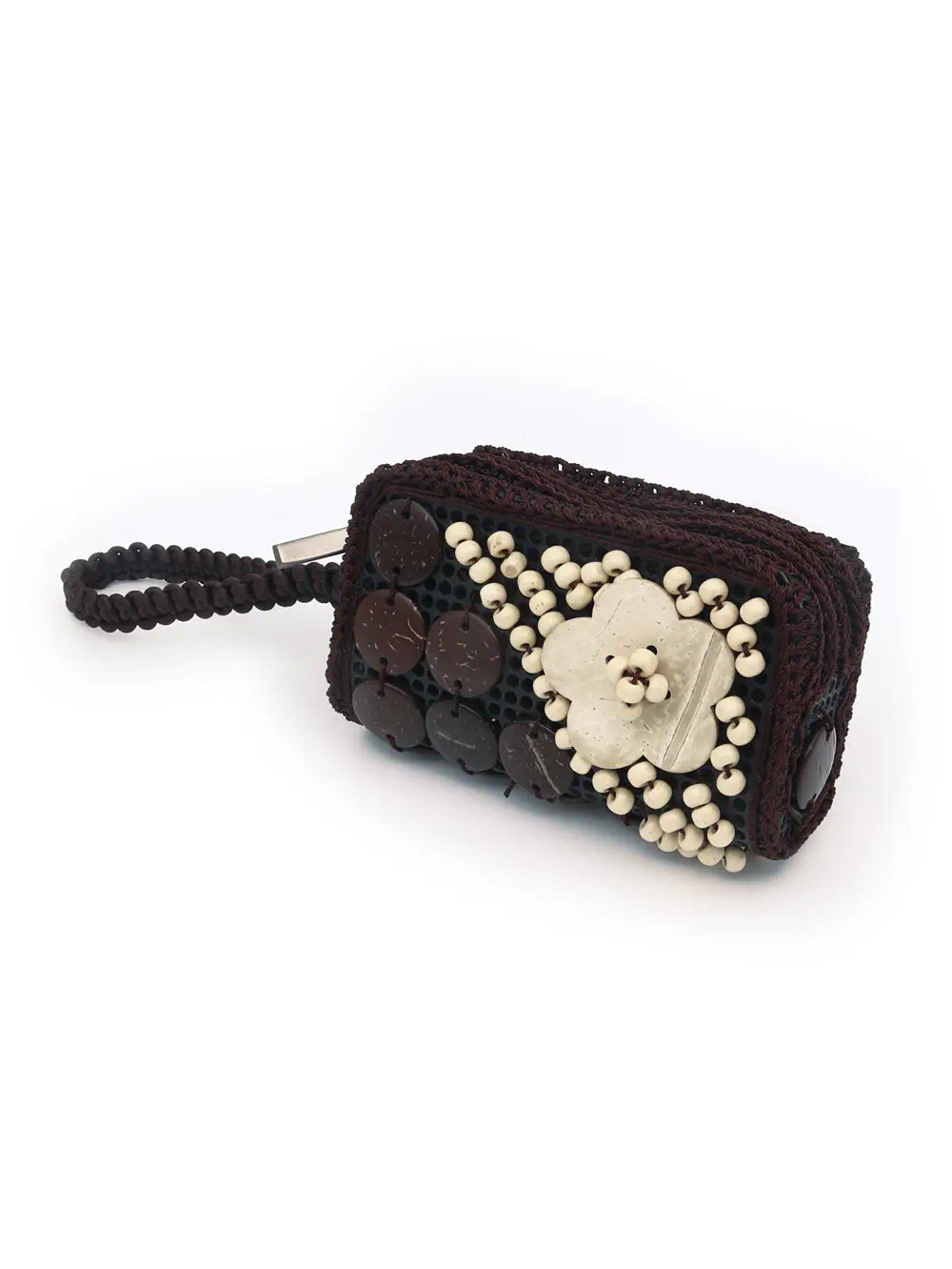 BOLSO DE CÁSCARA DE COCO CON CUENTAS ESTILO ÉTNICA CON 1 FLOR