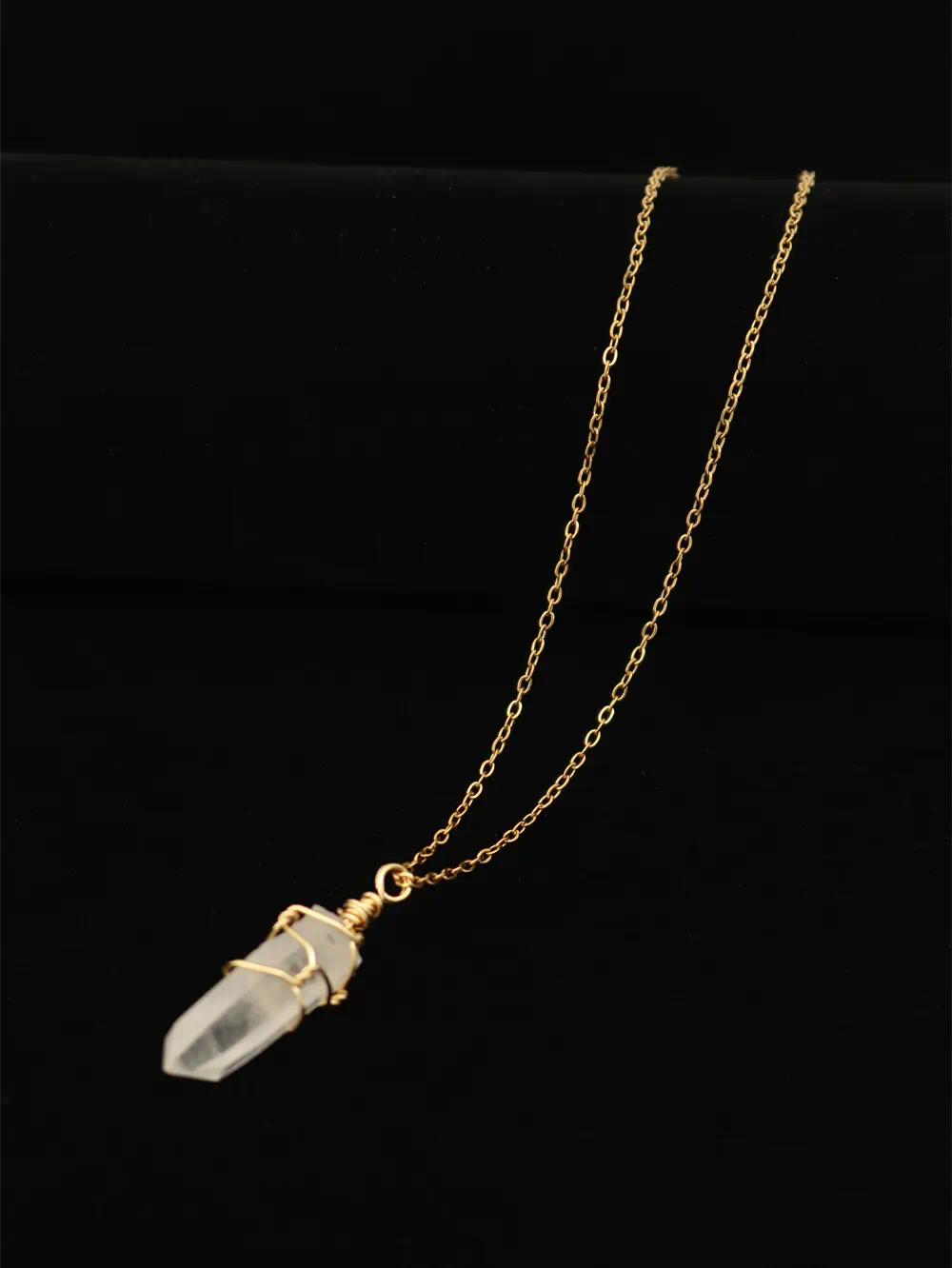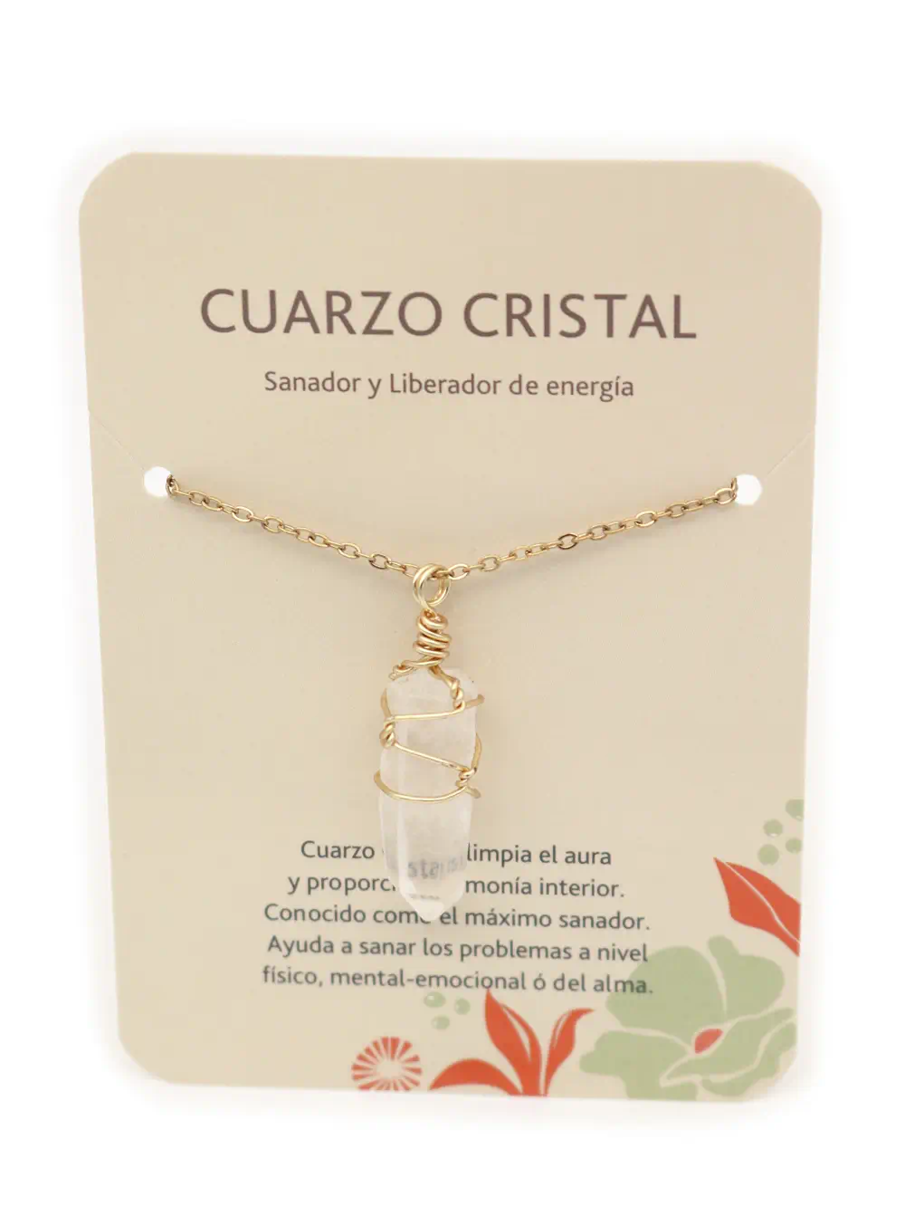 COLLAR DE ACERO CON DIJE DE PIEDRA CUARZO CRISTAL