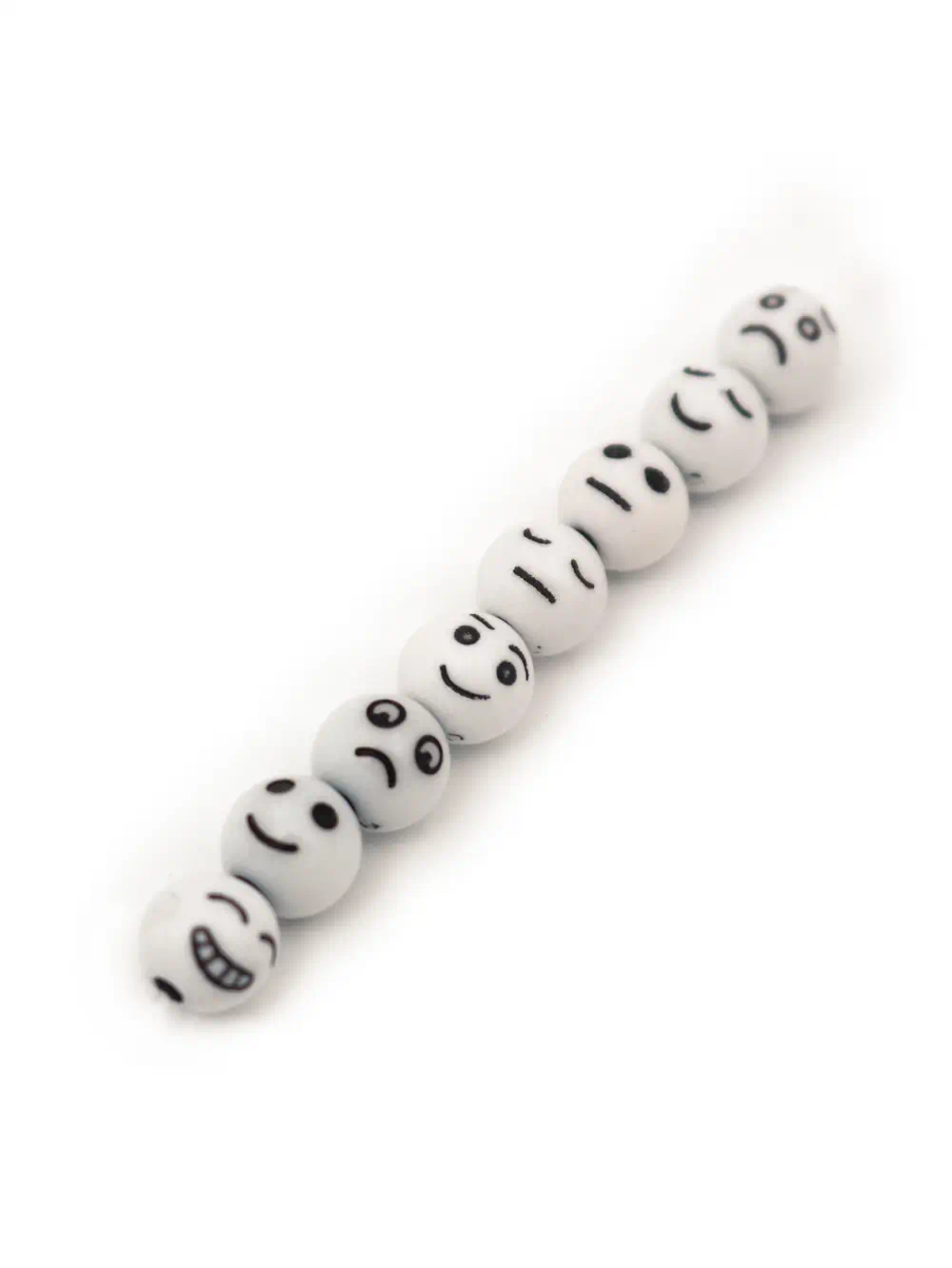 CUENTAS ACRILICAS REDONDAS DE COLOR BLANCO CON CARITAS NEGRAS