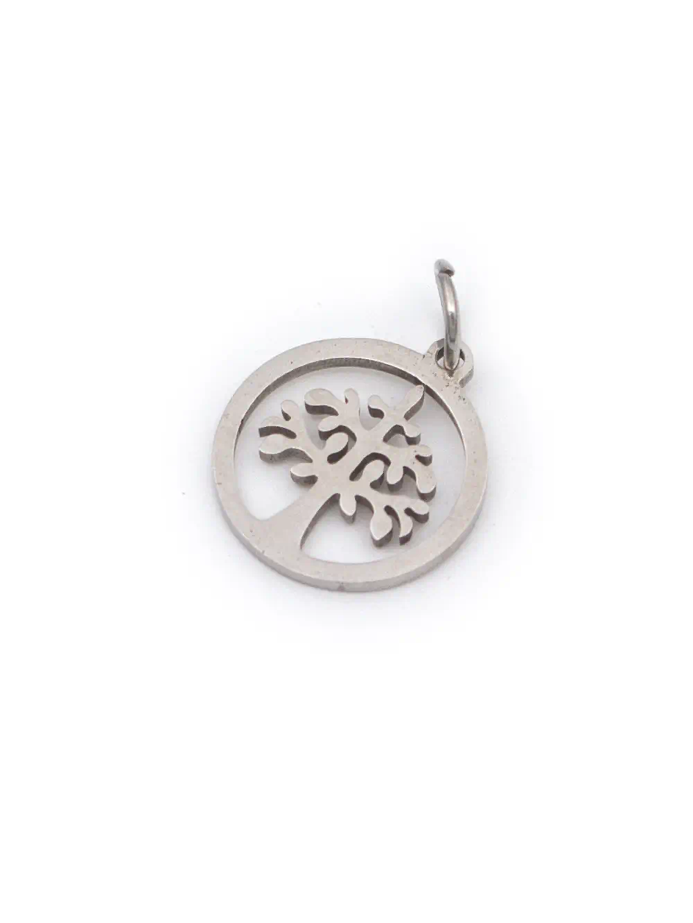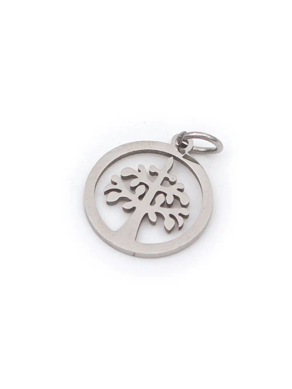 DIJE COLGANTE DE ACERO ARBOL DE LA VIDA EN UN CIRCULO