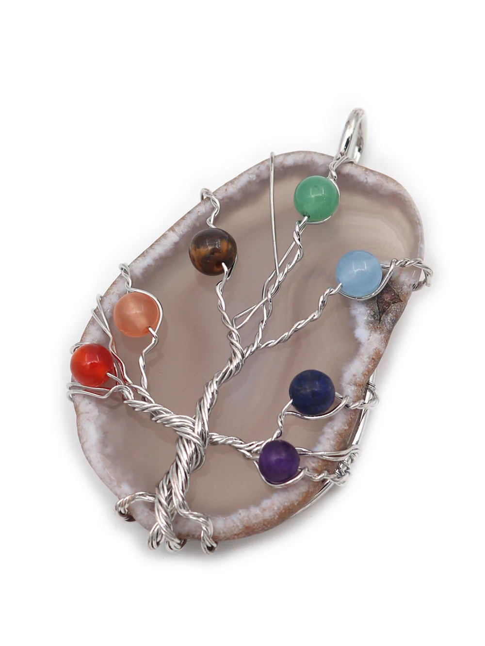 Dije de piedra agata Forma: Arbol de la vida Medida:5,8mm Color: Plomo