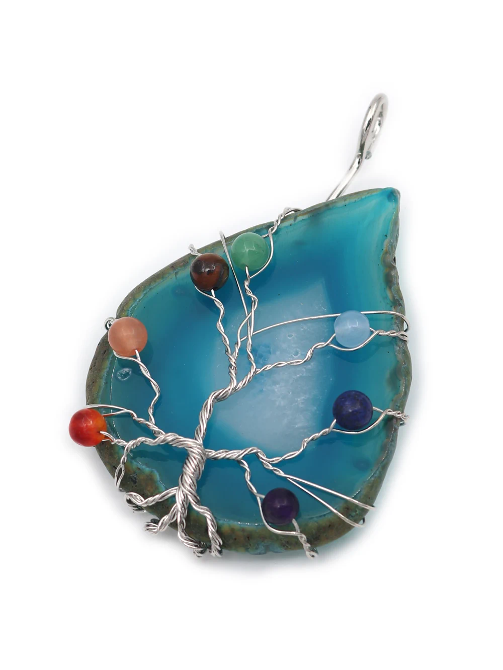DIJE DE PIEDRA COLGANTE ARBOL DE LA VIDA AGATA TURQUESA