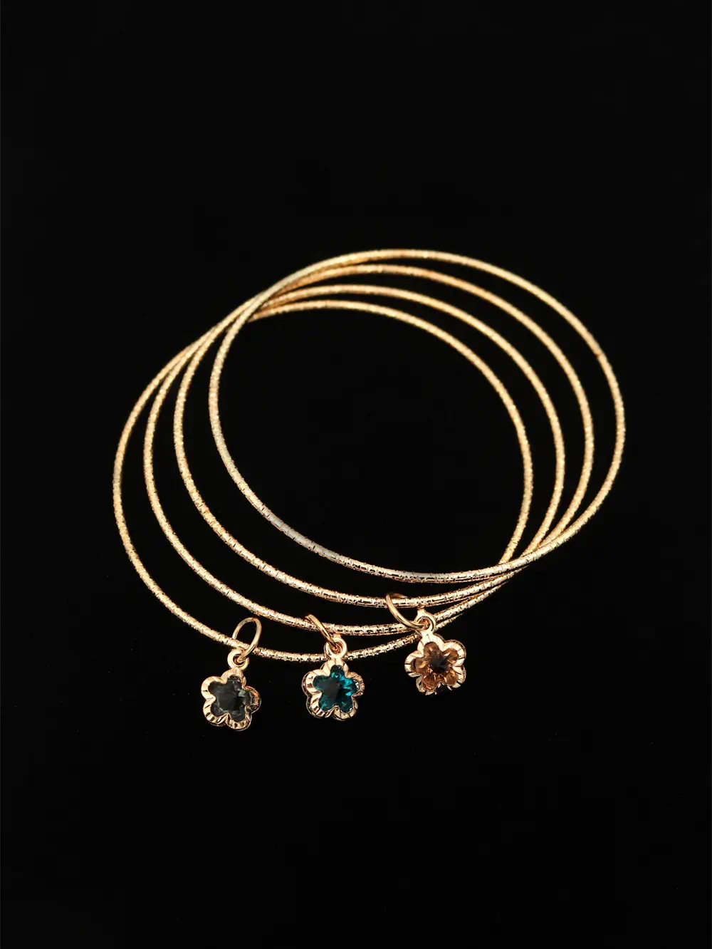 Juego de Pulseras de Acero de Color Dorado con Dije de Flores de Tres Colores