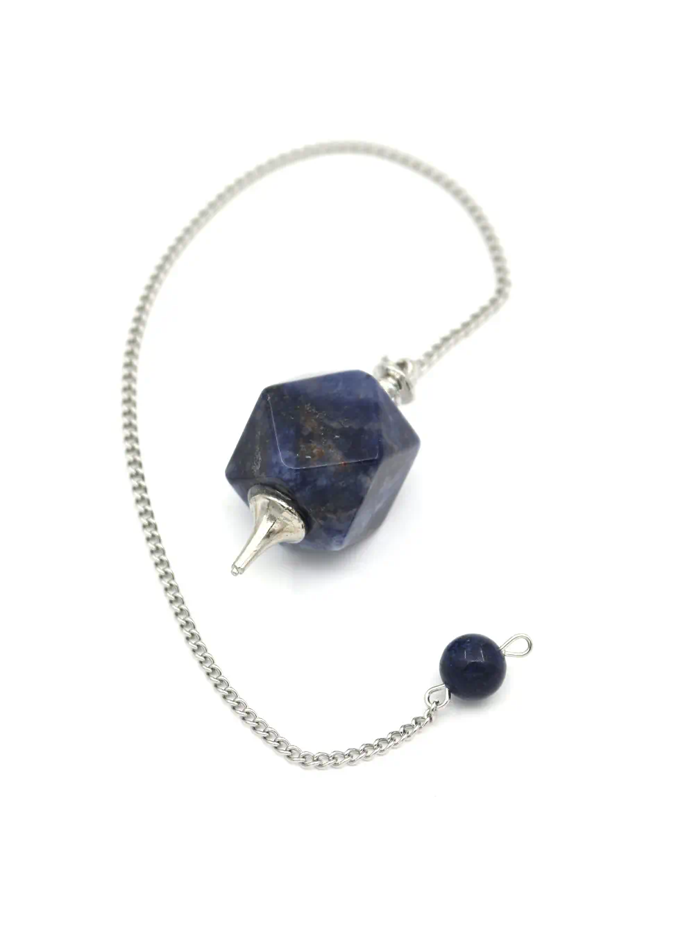 PENDULO EXAGONAL DE PIEDRA SODALITA CON CADENA