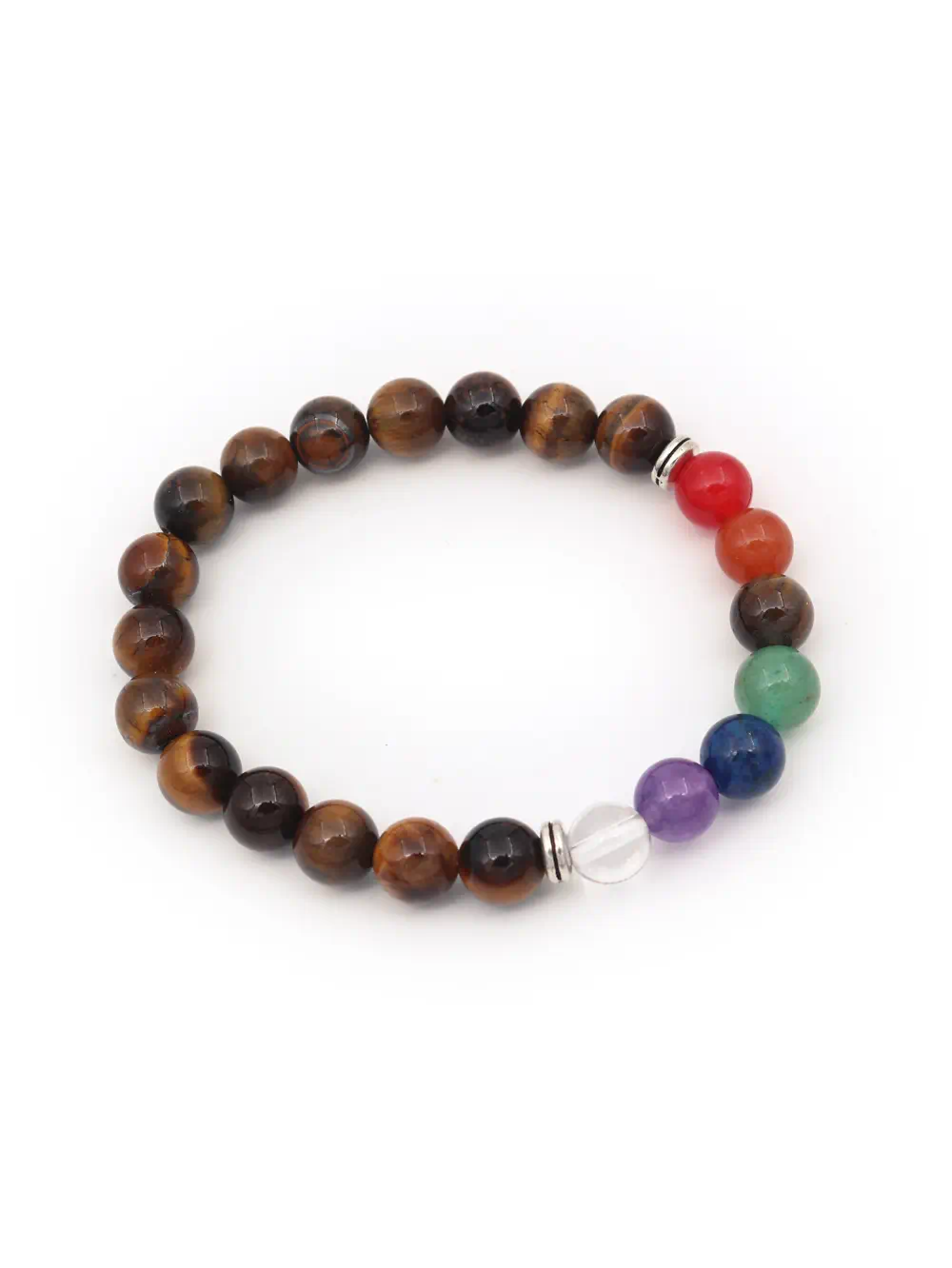 Pulsera de Piedra en Bolitas con 7 Chacras y Ojo de Tigre