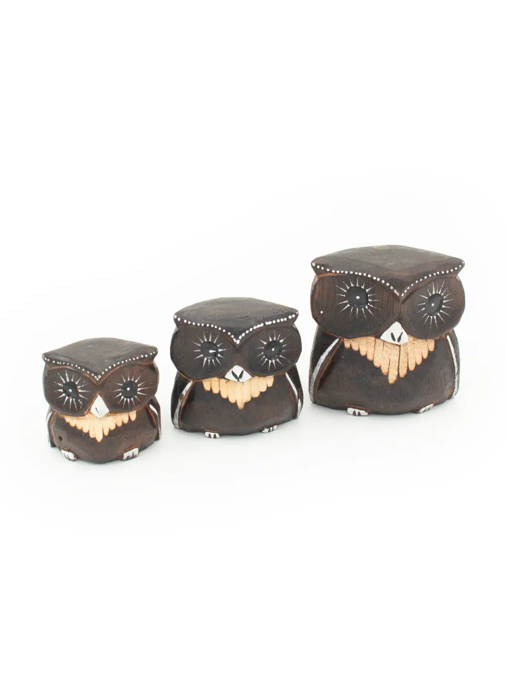 Este set de búhos decorativos de madera es perfecto para quienes buscan añadir un toque único y artesanal a su hogar. Cada figura está cuidadosamente tallada a mano, destacando los detalles que hacen de estos búhos un complemento elegante y especial para cualquier espacio. Su diseño combina simplicidad y estilo, ideal para decorar salas, oficinas o incluso dormitorios.
