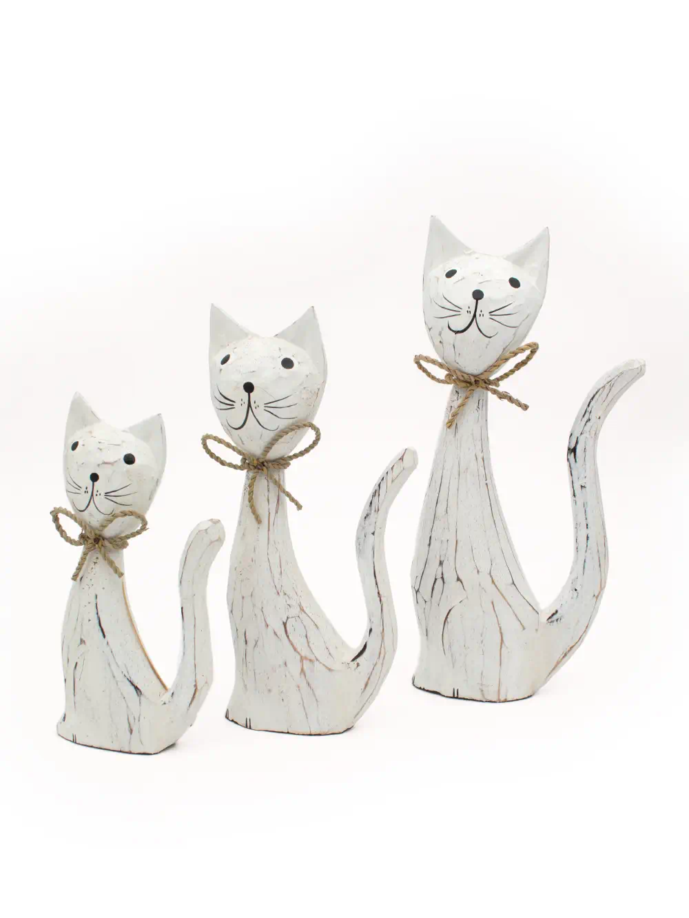 Fabricados con madera natural de alta calidad, estos gatos decorativos son resistentes y duraderos. Su acabado suave y pulido resalta la belleza de la veta natural de la madera, aportando un toque cálido y elegante a tu hogar.