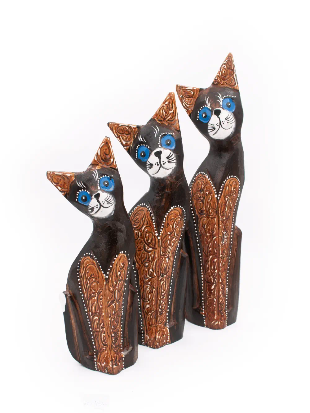 Fabricados con madera natural de alta calidad, estos gatos decorativos son resistentes y duraderos. Su acabado suave y pulido resalta la belleza de la veta natural de la madera, aportando un toque cálido y elegante a tu hogar.