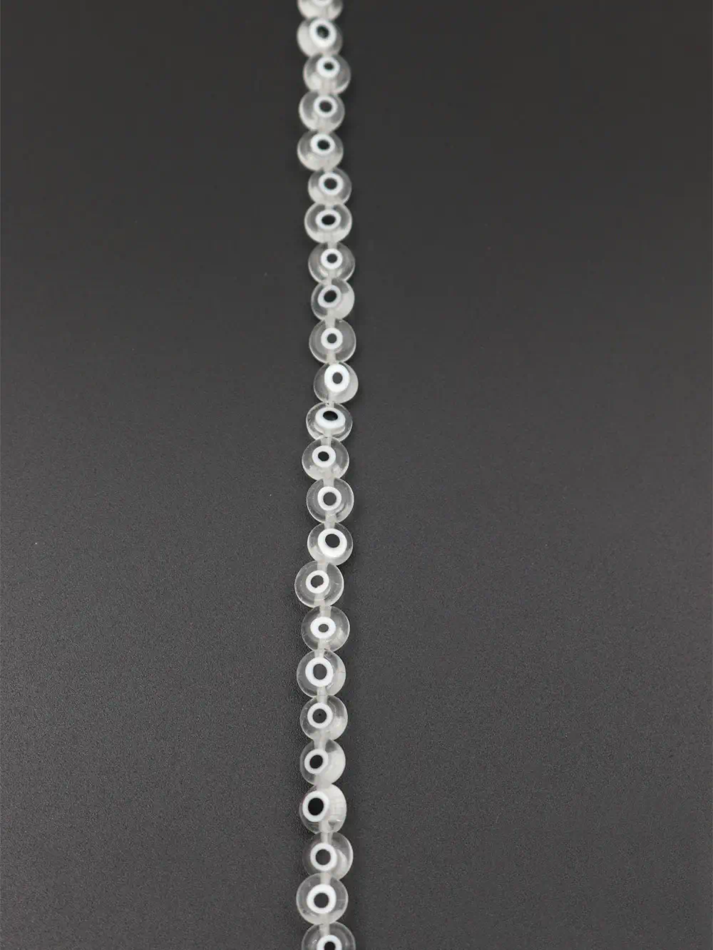 La Tira de Ojo Turco Color Cristal es un producto atractivo y versátil, ideal para la creación de joyas y manualidades. Este tipo de tira está elaborada con Acrílico, un material conocido por su durabilidad y ligereza, lo que lo convierte en una opción perfecta para quienes buscan calidad en sus proyectos.