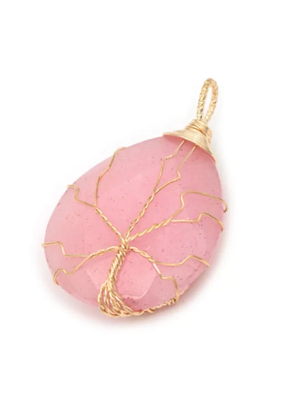 DIJE PIEDRA ÁRBOL DE LA VIDA CON ALAMBRE-CUARZO ROSA