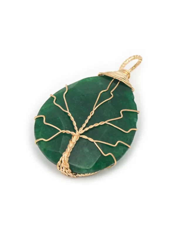 DIJE PIEDRA ÁRBOL DE LA VIDA CON ALAMBRE-ÁGATA VERDE