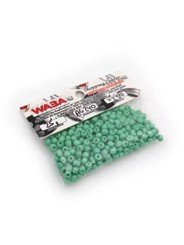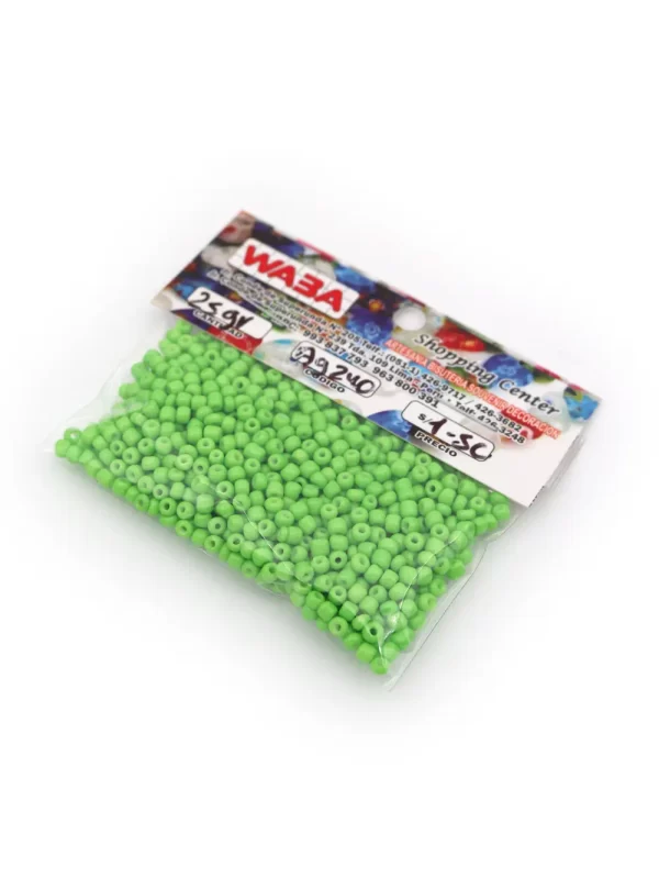 Mostacilla China Color:verde Tamaño: 5mm Peso:25gr Forma: Donas