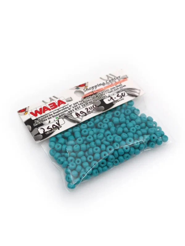 Mostacilla China Color:turquesa Tamaño: 5mm Peso: 25gr Forma: Donas