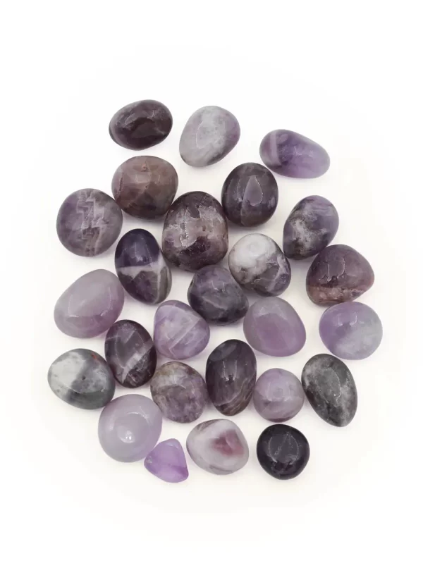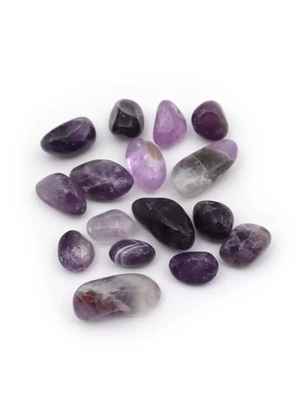 Piedra Amatista Uso: Decoraciones, Colecciones Material: piedra pulida Medida: 1x1.5 cm aprox Forma: Tamboreada Peso: 50gr