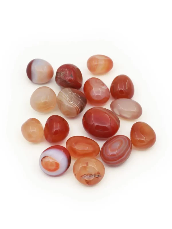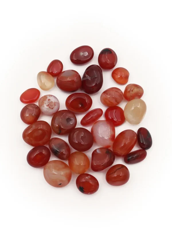 Piedra Cornalina Uso: Decoraciones, Colecciones Material: piedra pulida Medida: 1x1.5 cm aprox Forma: Tamboreada Peso: 50gr