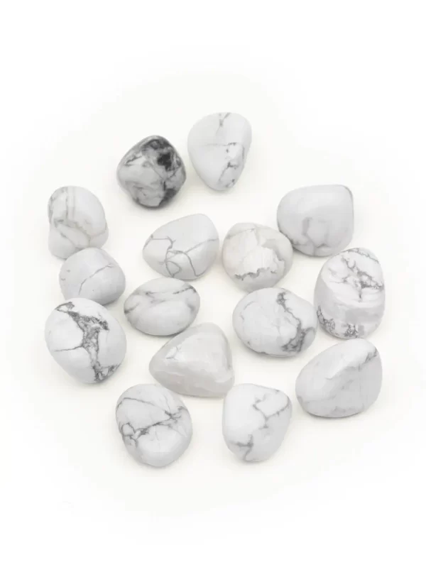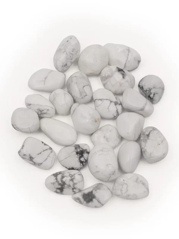 Piedra Howlita Uso: Decoraciones, Colecciones Material: piedra pulida Medida: 1x1.5 cm aprox Forma: Tamboreada Peso: 50gr